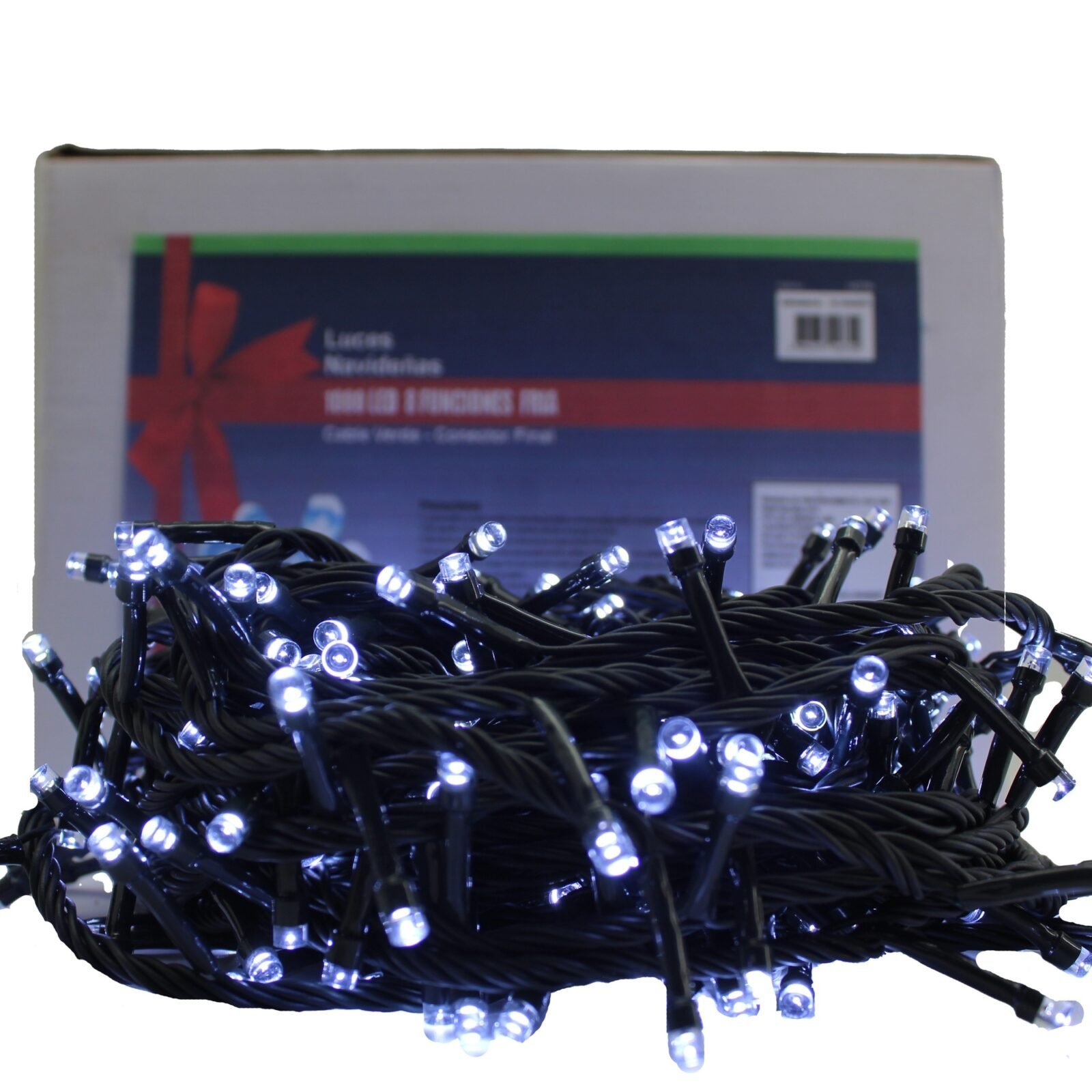 LUZ NAVIDEÑA FRIA X 1000 LED 8 FUNCIONES CABLE VERDE