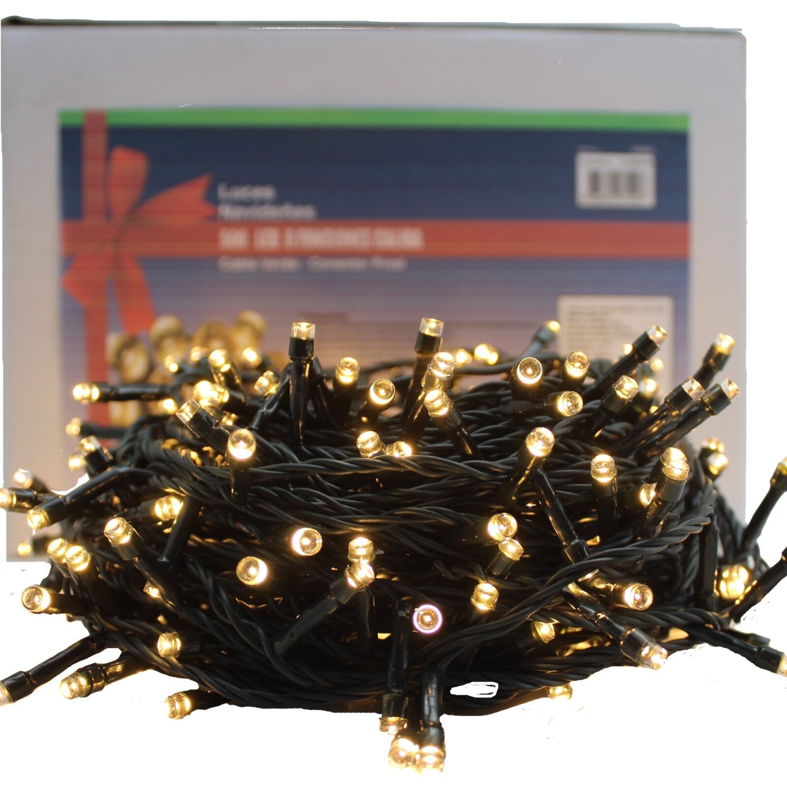 LUZ NAVIDEÑA CALIDA X 100 LED FIJA CABLE VERDE