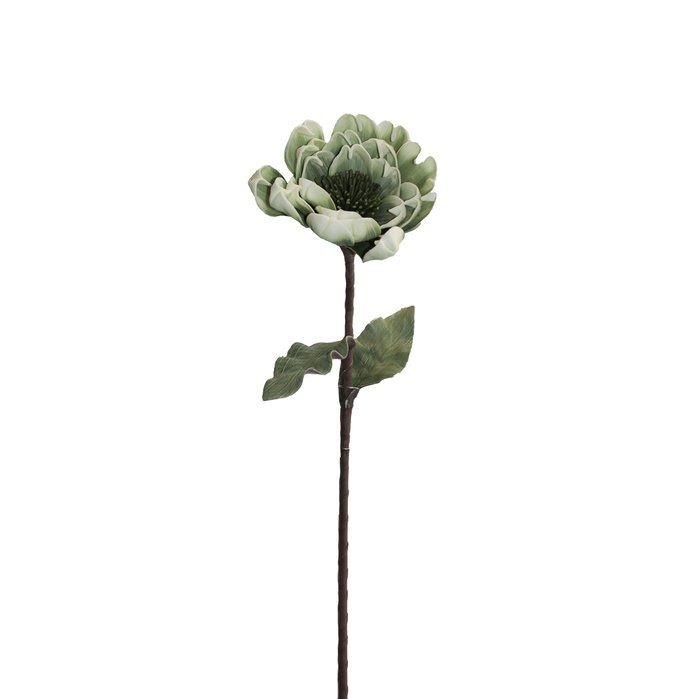 Disfruta de la elegancia y la sofisticacion de nuestra Flor Dalia Verde 70cm. Esta pieza decorativa artificial, reproduce la belleza natural de la dalia, con petalos verdes frescos y un centro amarillo brillante. Con una altura de 70cm, es ideal para decorar interiores, oficinas, restaurantes y hogares. Añade un toque de naturaleza y refinamiento a cualquier ambiente.
