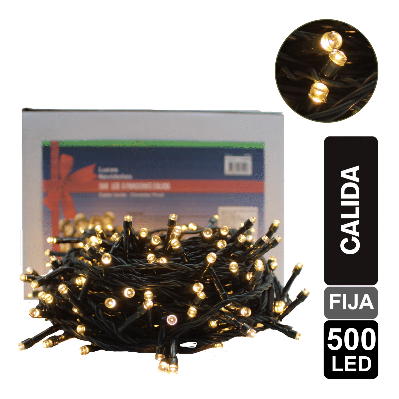 LUZ NAVIDEÑA CALIDA X 500 LED FIJA CABLE VERDE