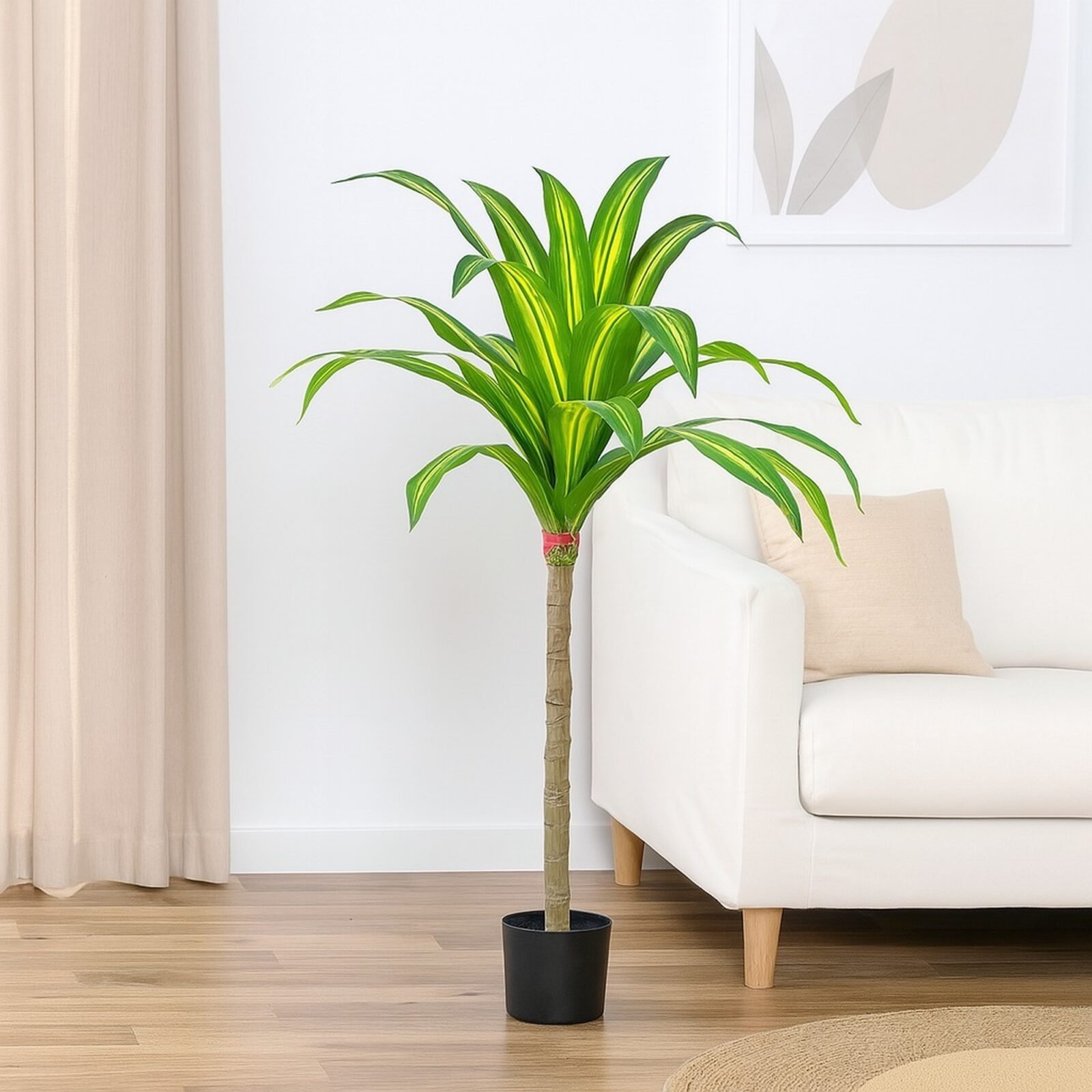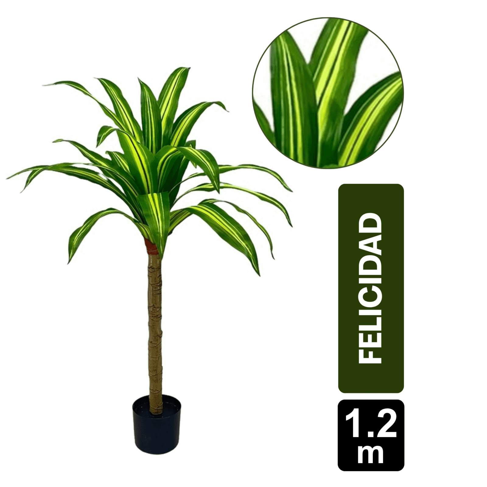 La Mata de la Felicidad artificial de 120 cm es una opción encantadora para agregar un toque de frescura y alegría a cualquier ambiente. Con su frondoso follaje verde y un diseño realista, esta planta es ideal para decorar tanto interiores como exteriores protegidos. Perfecta para quienes desean disfrutar de la belleza de la naturaleza sin el esfuerzo del mantenimiento, se mantendrá siempre vibrante y saludable, creando un espacio acogedor y lleno de vida.